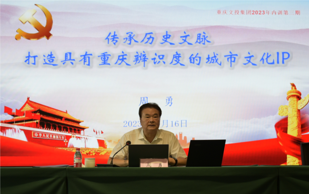 10月16日下午,bbin官方平台集团2023年第三期培训在集团5楼第一会议室举行。本期培训邀请了中国抗日战争史学会副会长、中国城市史研究会副会长、重庆史研究会会长周勇作专题授课,主题为“传承历史文脉 打造具有重庆辨识度的城市文化IP”。本部全体干部职工及各全资、控股子公司部分干部职工参培,集团党委委员、副总经理潘铸主持培训。